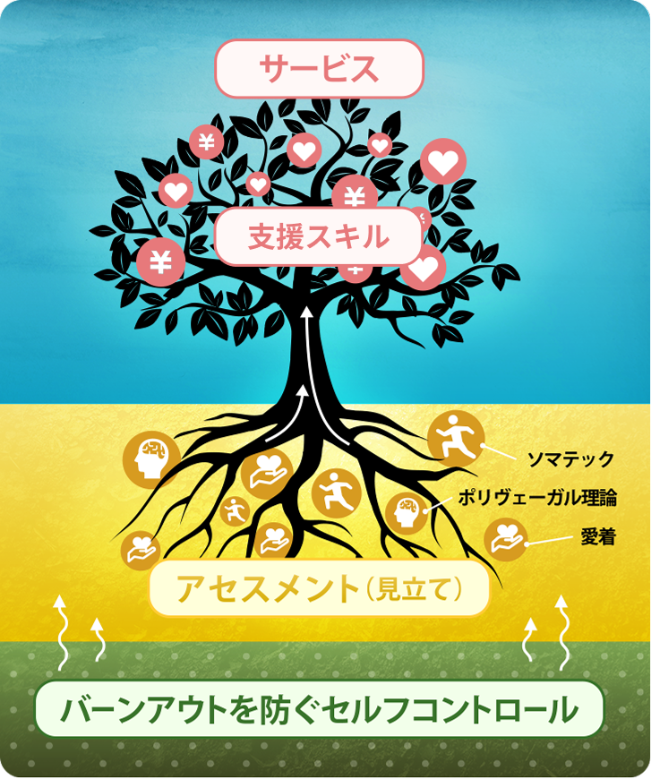 この三つの柱がシナジーとなり、支援者自身の心身が安定し、クライアントの変化を確かなものにしていきます。